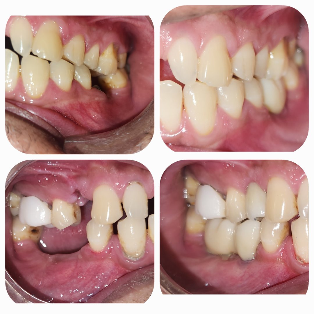 Fixed Partial Denture (FPD) treatment at Katna Dental Clinic, Daulatpur Chowk, Himachal Pradesh showing before and after results of missing front tee…